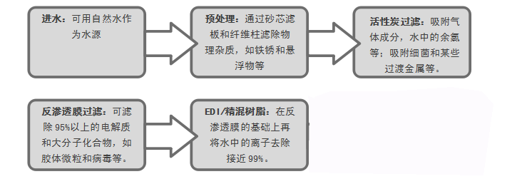 以上為從自然水到超純水的過程,一些以自然水為進(jìn)水的超純水機(jī)就基本包含了上述的所有純化單元。當(dāng)然也有以純水(反滲透水,蒸餾水等)為進(jìn)水的超純水機(jī),如優(yōu)普的UPHW,純化單元相對(duì)就要少一些。