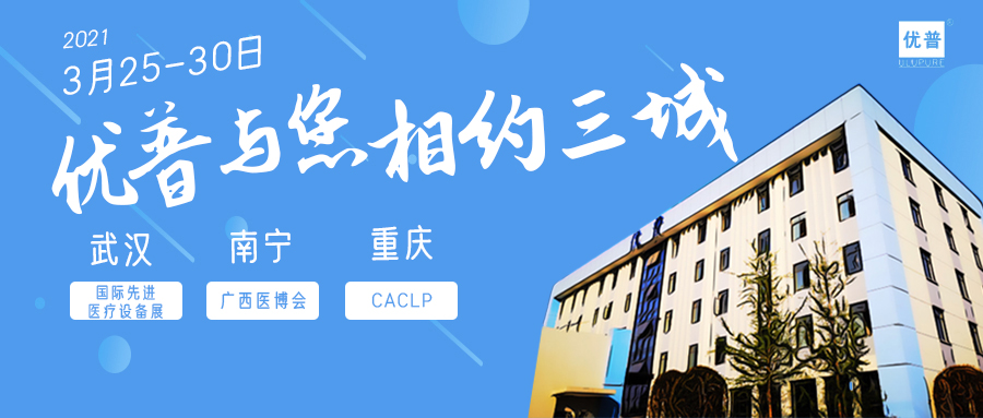 展會(huì)名稱:第37屆湖北(武漢)國際先進(jìn)醫(yī)療設(shè)備展展會(huì)時(shí)間:2021年3月25-27日展會(huì)地點(diǎn):武漢國際會(huì)展中心優(yōu)普展位:A58優(yōu)普展品:UPS,ULPTY,UPL,ULPS第二城,南寧:北部灣廣西醫(yī)博會(huì)作為拓展市場的戰(zhàn)略合作伙伴,攜手構(gòu)筑醫(yī)療行業(yè)市場新格局。展會(huì)名稱:2021第32屆北部灣廣西醫(yī)療器械展覽會(huì)展會(huì)時(shí)間:2021年3月26-28日展會(huì)地點(diǎn):南寧國際會(huì)展中心優(yōu)普展位:C25優(yōu)普展品:UPS,ULPTY,UPL,ULPS第三城,重慶:一年一度的CACLP是體外診斷行業(yè)旗幟性博覽盛會(huì),也是體外診斷產(chǎn)業(yè)發(fā)展的風(fēng)向標(biāo),對體外診斷產(chǎn)品的宣傳、銷售、轉(zhuǎn)化、提升、合作起到了不可替代的作用。展會(huì)名稱:第18屆國際檢驗(yàn)醫(yī)學(xué)暨輸血儀器博覽會(huì)展會(huì)時(shí)間:2021年3月28-30日展會(huì)地點(diǎn):重慶國際博覽中心優(yōu)普展位:N5-H403、N5-H453優(yōu)普展品:UPS,ULPTY,UPL,ULPS四川優(yōu)普超純科技有限公司專注為客戶提供實(shí)驗(yàn)室、醫(yī)用、工業(yè)純水/超純水專業(yè)解決方案。此次三城展會(huì),優(yōu)普以客戶需求出發(fā),集中展示醫(yī)用純水產(chǎn)品、技術(shù)服務(wù)和解決方案,將優(yōu)普多年在實(shí)驗(yàn)室、科研、醫(yī)院檢驗(yàn)科、清洗消毒等方面積累的經(jīng)驗(yàn)與大家共同分享。