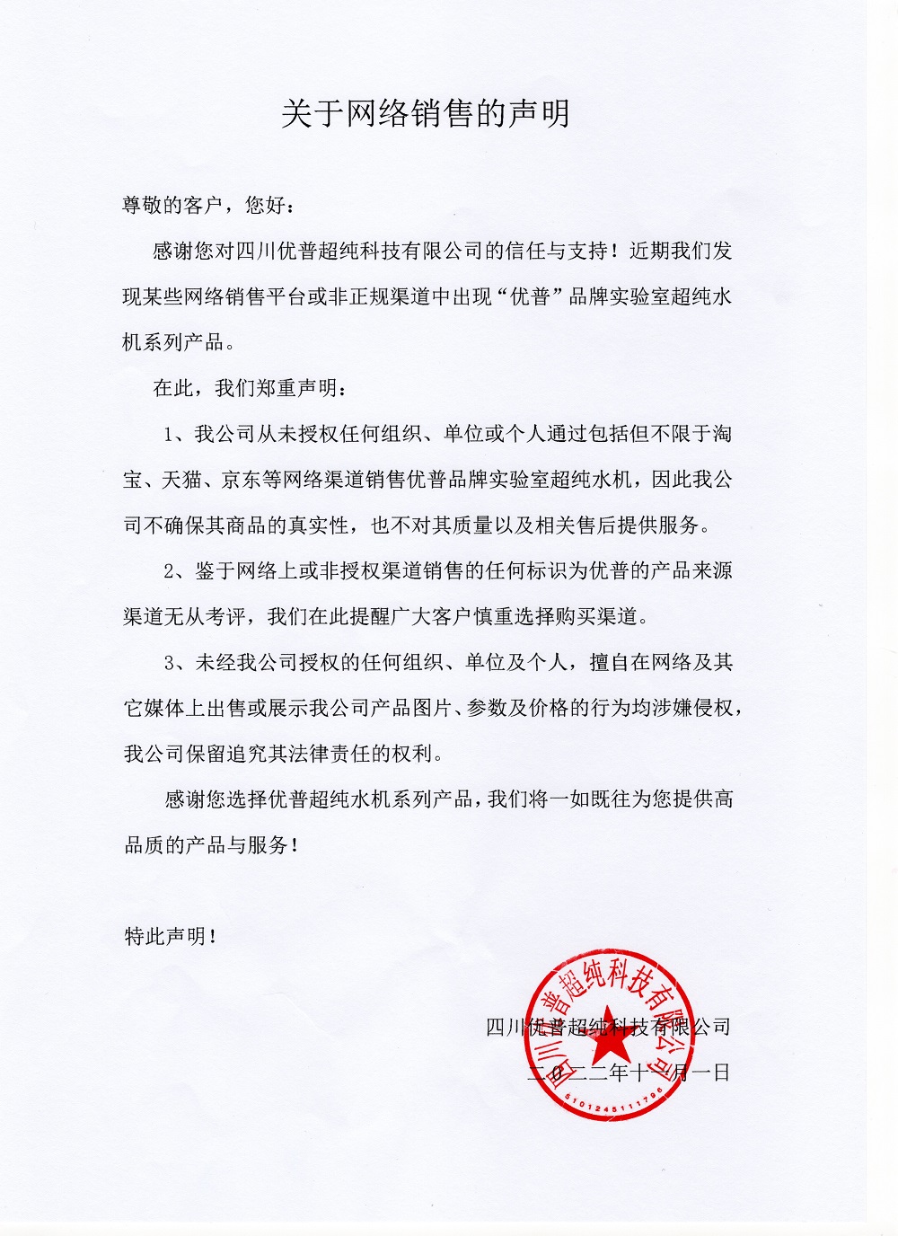 關(guān)于網(wǎng)絡(luò)銷售的聲明!
