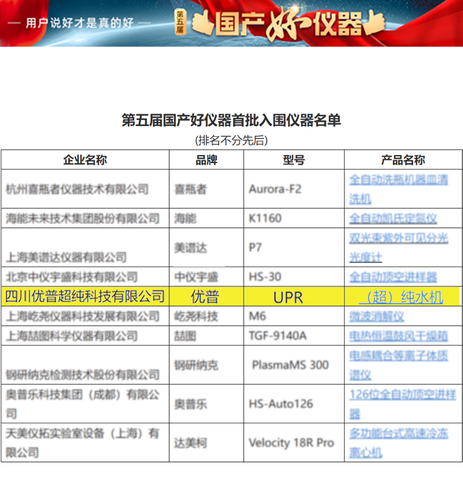 • 優(yōu)普產(chǎn)品再次入選國(guó)產(chǎn)好儀器