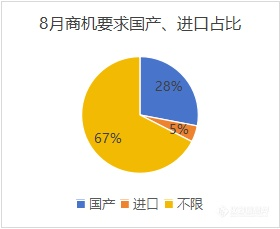 采購的儀器中,大多數(shù)不限產地,明確要求國產比例28%,進口5%,相比于7月份,無太大波動。在設備更新政策扶持下,采購者對國產儀器的需求逐步趨于穩(wěn)定,廠商需考慮如何脫穎而出,才能打破平衡,營造新的熱潮。