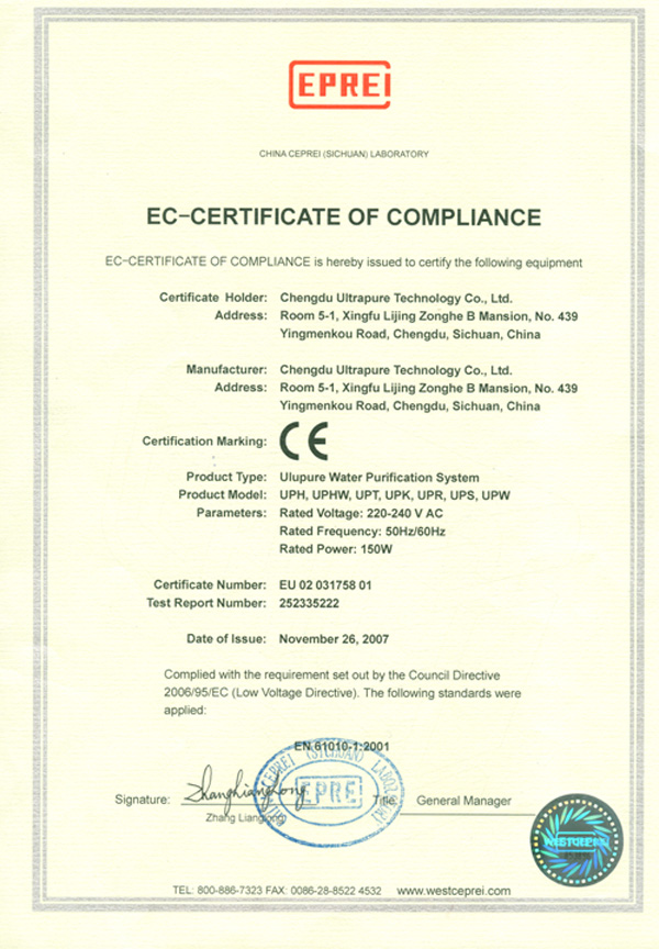 優(yōu)普超純水機通過歐盟CE認證已批量出口歐盟各國