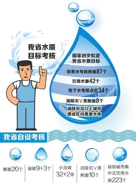 記者了解到,國家初步擬定我省的水質目標主要有地表水考核斷面87個,飲用水源42個,地下水考核點位34個,消除劣Ⅴ類斷面8個,消除市及以上城市建成區(qū)內黑臭水體;我省自設考核斷面20個,湖庫9+3個,小流域32+2條,消除劣Ⅴ類斷面10個,縣級城市集中式飲用水源223個等。“比如成都,目前黃龍溪考核斷面為劣Ⅴ類,屬于要消除的范圍,是否完成目標,將納入年度考核?!?/span>
