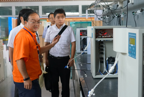 雙方就超純水領(lǐng)域技術(shù)及MBR膜反應(yīng)器技術(shù)進(jìn)行了深度交流。交流會(huì)后,客人們參觀了優(yōu)普的生產(chǎn)制造車間。
