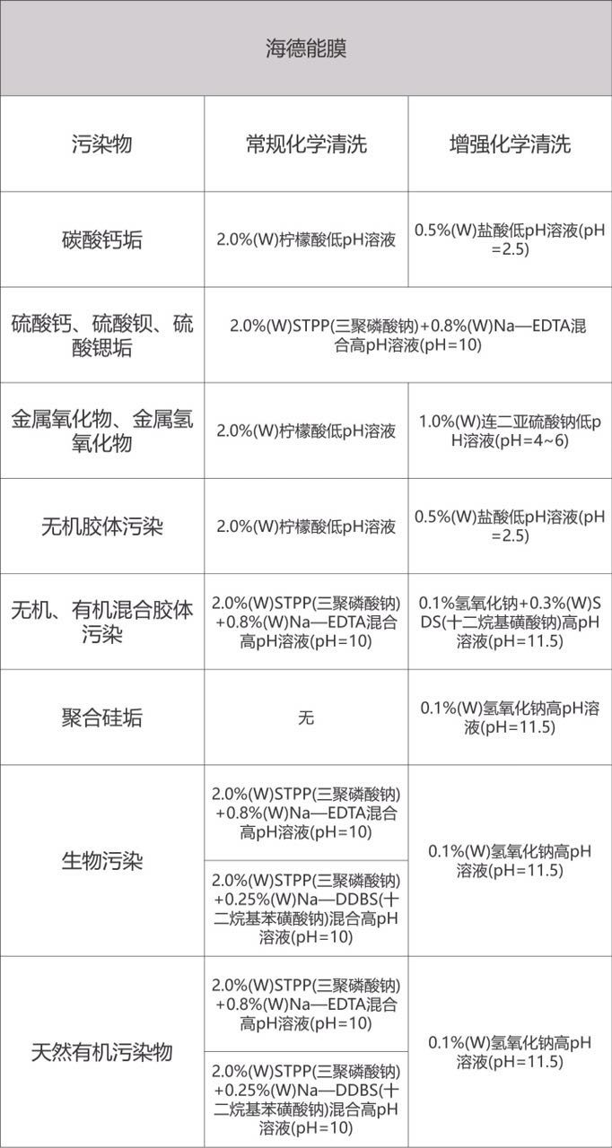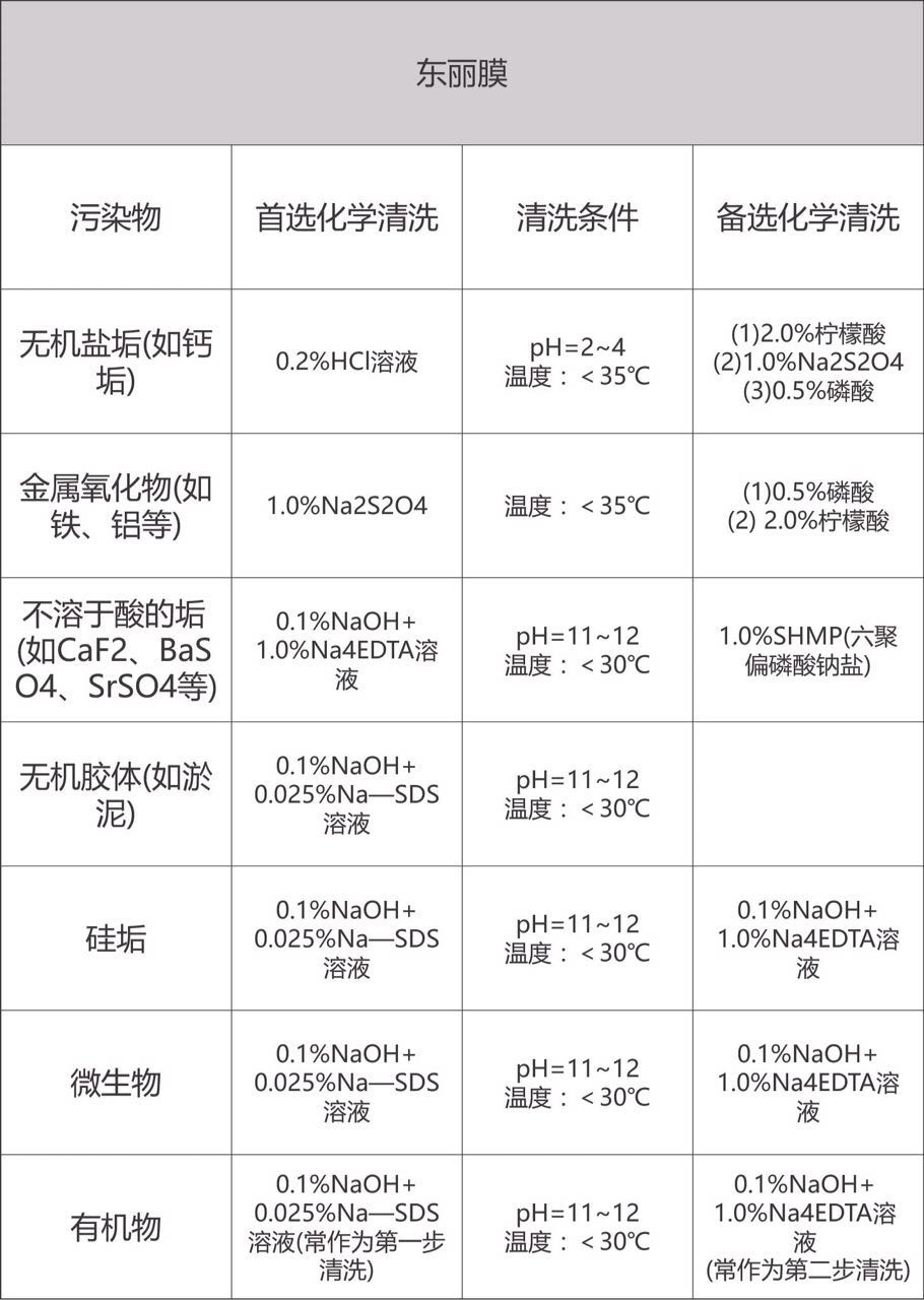 3、不同膜廠家推薦的清洗液