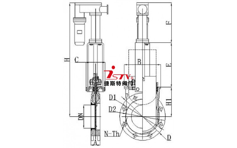 | DN | A | D | D1 | D2 | H | H1 | E | F | C | B | N-Th |